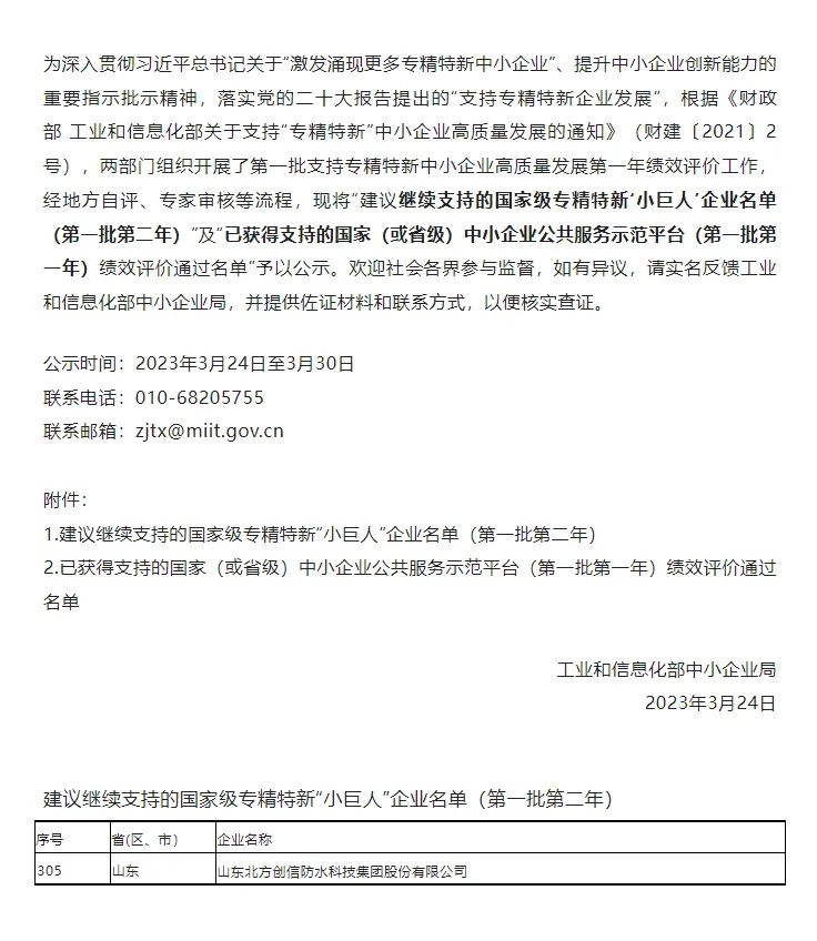 3月24日,,工信部公示了第一批第二年建议继续支持的国家级专精特新“小巨人”名单,,从第一年的782家企业中择优575家。。凯时尊龙集团通过审核,,,,再度上榜!!!!